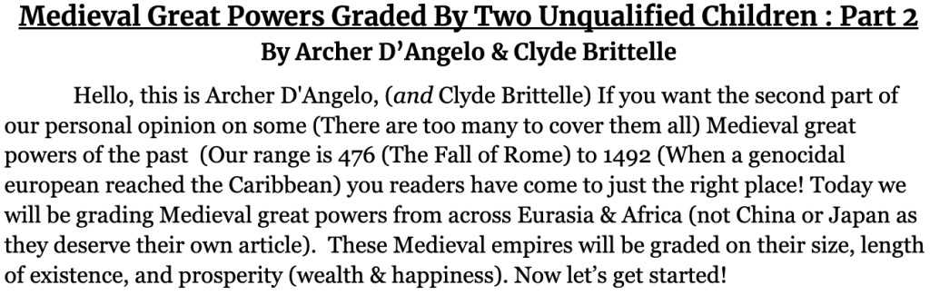 Medieval Great Powers Graded By Two Unqualified Children : Part 2